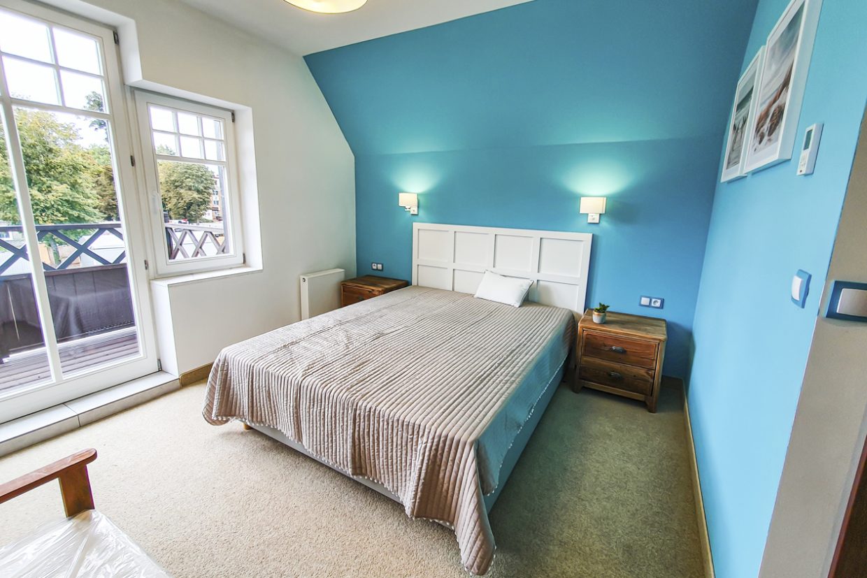 Dwuosobowy klimatyzowany pokój z nowoczesnym wyposażeniem oraz zestawem powitalnym z kawą i herbatą. Każdy pokój wyposażony jest w komfortowe łóżko typu King Size. Na życzenie klienta zostanie przydzielony pokój z sobnymi łóżkami. W części dziennej pokój został wyposażony w telewizor, stolik, designerski fotel lub sofę. Pokój posiada łazienkę z prysznicem. Niektóre pokoje dodatkowo posiadają balkony nadające niepowtarzalny klimat pobytowi zwłaszcza latem.