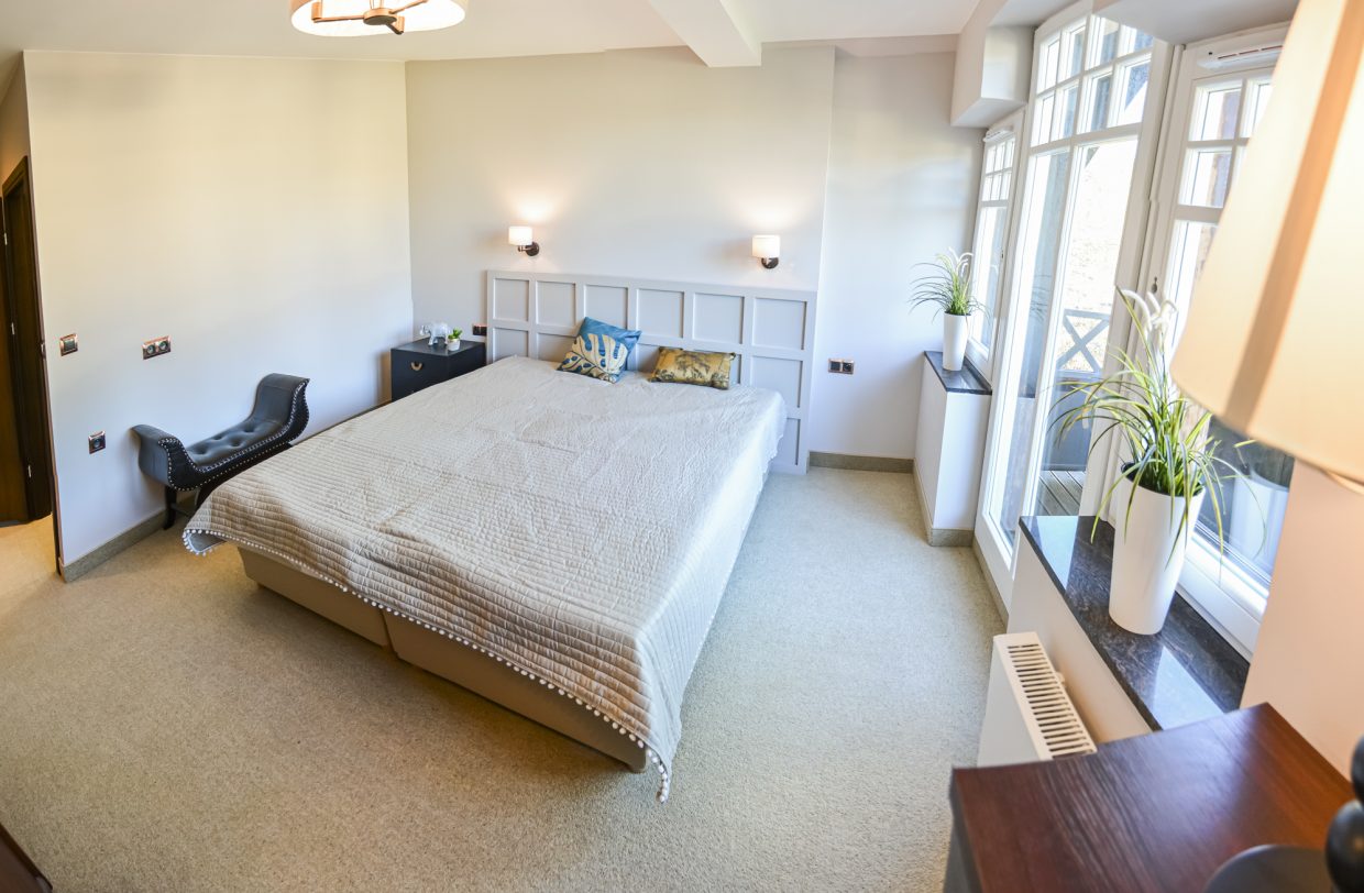 Dwuosobowy klimatyzowany pokój z nowoczesnym wyposażeniem oraz zestawem powitalnym z kawą i herbatą. Każdy pokój wyposażony jest w komfortowe łóżko typu King Size. Na życzenie klienta zostanie przydzielony pokój z sobnymi łóżkami. W części dziennej pokój został wyposażony w telewizor, stolik, designerski fotel lub sofę. Pokój posiada łazienkę z prysznicem. Niektóre pokoje dodatkowo posiadają balkony nadające niepowtarzalny klimat pobytowi zwłaszcza latem.